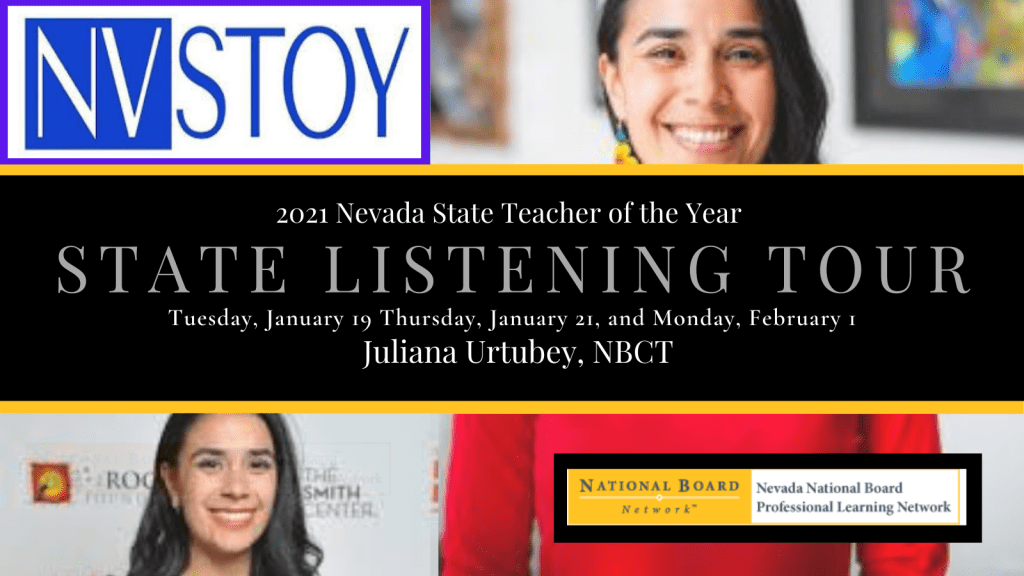 As the 2021 Nevada Teacher of the Year, Juliana Urtubey serves as an advocate for educators, parents, and students in our state. To bring your voice to the forefront when speaking to policy makers and education stakeholders, Juliana invites you to join this virtual forum to share your experiences, concerns, and insights about education in your region. Registration is open to educators, parents, and students.